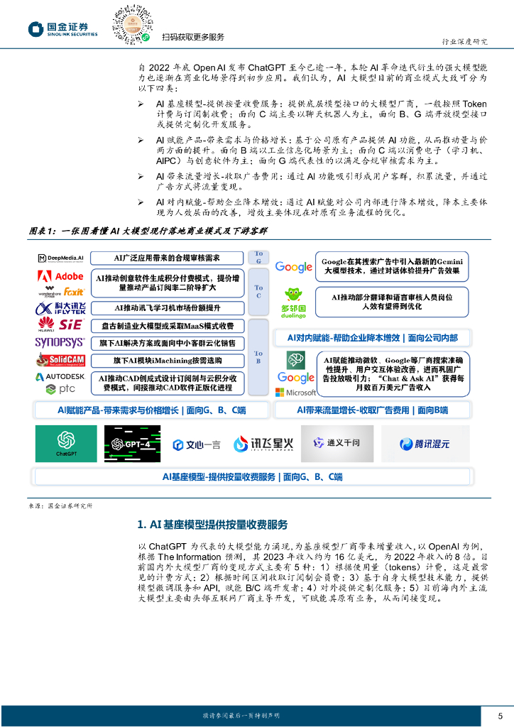 国金证券:计算机行业研究:AI应用落地的商业模式探索.pdf