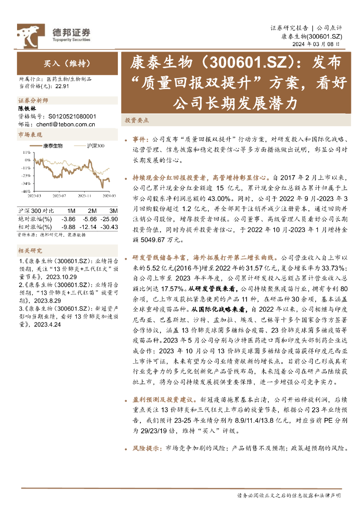 德邦证券:康泰生物(300601)-发布“质量回报双提升”方案,看好公司长期发展潜力.pdf
