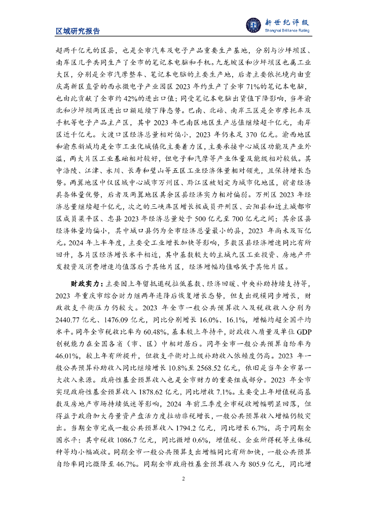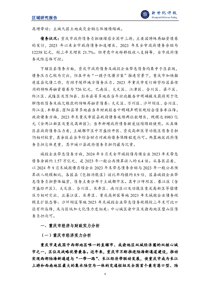 新世纪评级:重庆市及下辖各区县经济财政实力与债务研究(2024).pdf
