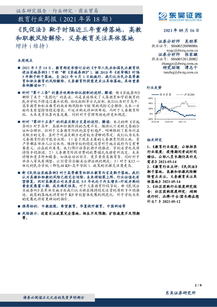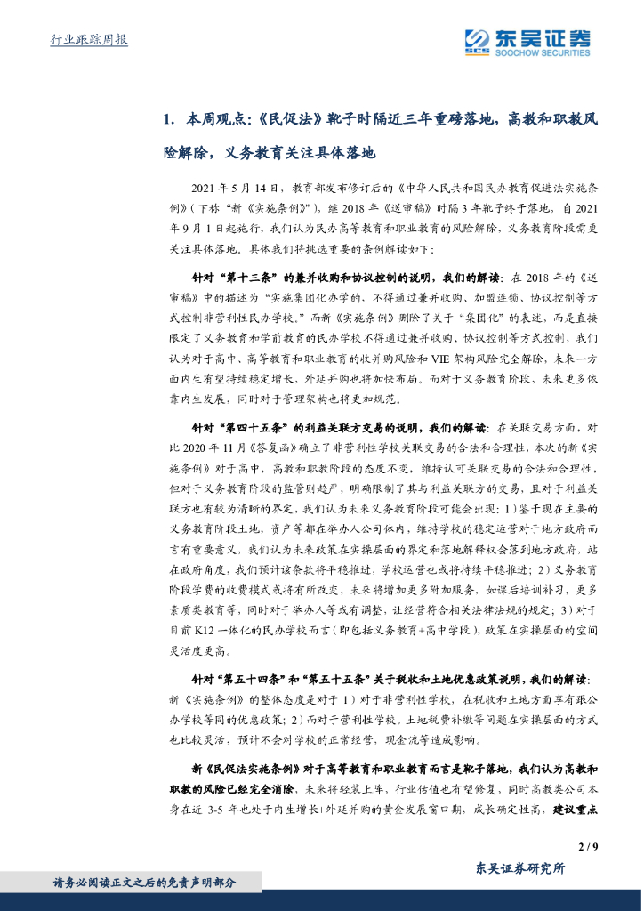 东吴证券:教育行业周报(2021年第18期):《民促法》靴子时隔近三年重磅落地,高教和职教风险解除,义务教育关注具体落地.pdf