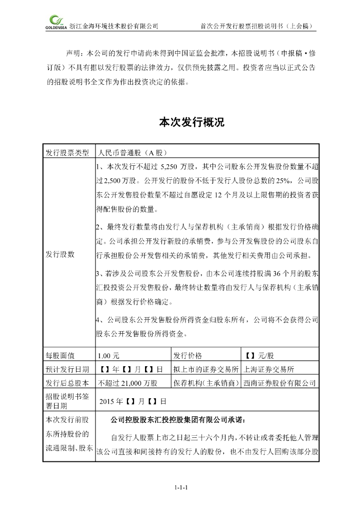 浙江金海环境技术股份有限公司上交所主板IPO上市招股说明书.pdf