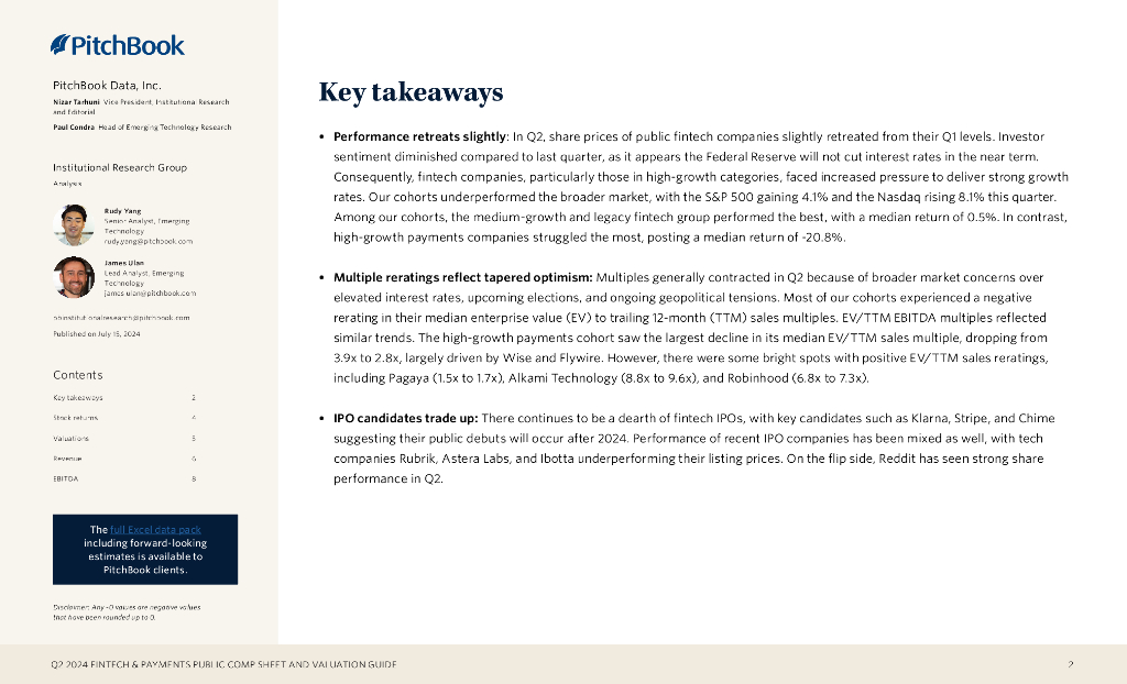 PitchBook:2024年二季度金融科技与支付公开报表和估值指南报告(英文版).pdf