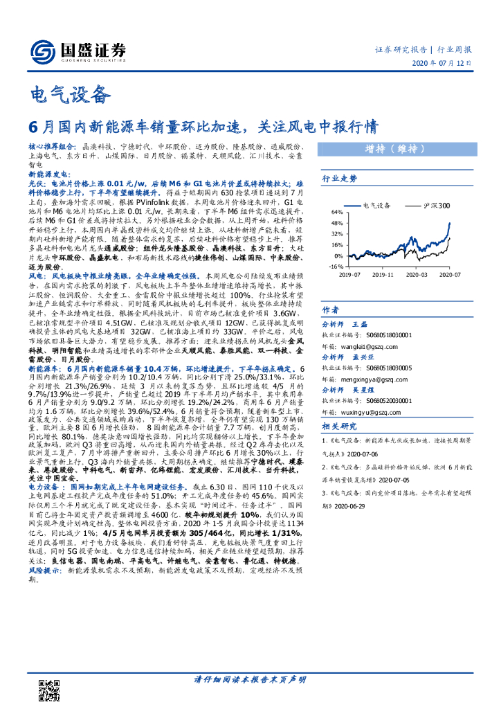 国盛证券:电气设备行业周报:6月国内新能源车销量环比加速,关注风电中报行情.pdf