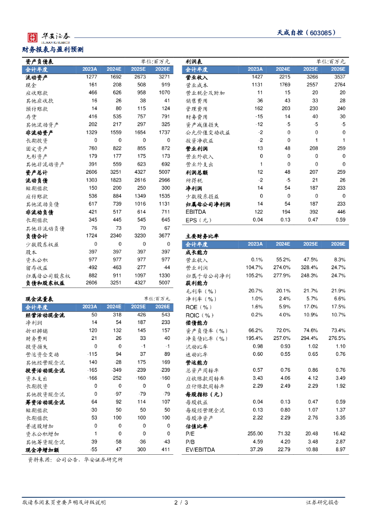华安证券:天成自控(603085)-24Q3业绩好于预期,期待eVTOL领域新进展.pdf