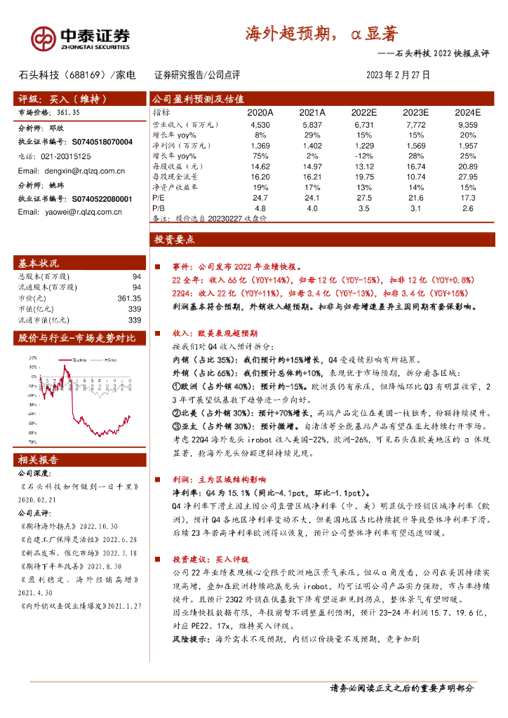 中泰证券:石头科技2022快报点评:海外超预期,α显著.pdf