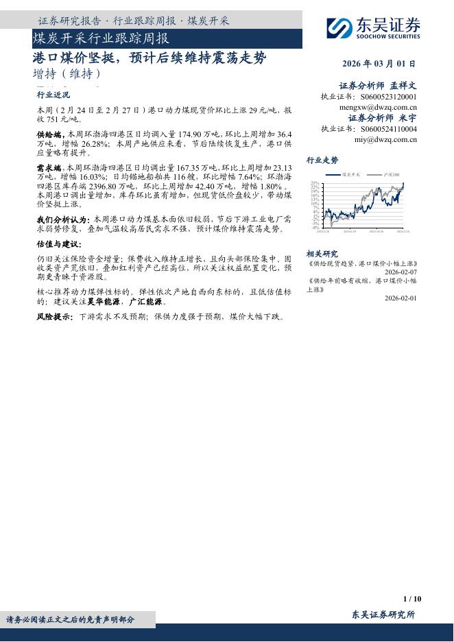 东吴证券:煤炭开采行业跟踪周报:港口煤价坚挺,预计后续维持震荡走势.pdf