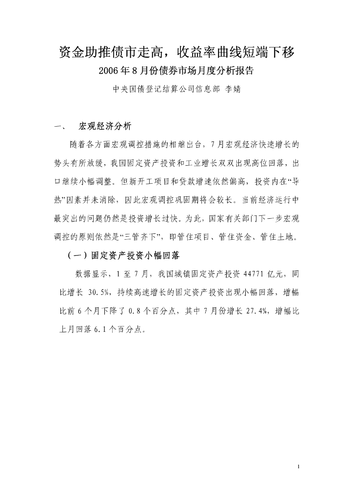 中债研发中心:2006年8月份债券市场月度分析报告.pdf