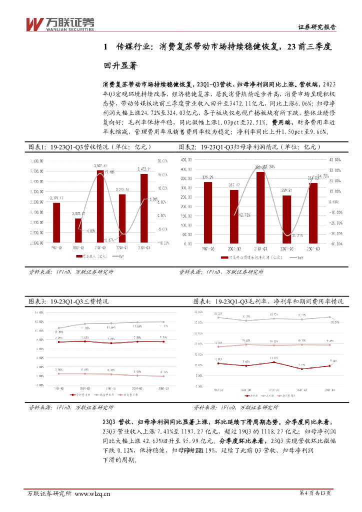 万联证券:传媒行业2023三季报综述:业绩回升显著,板块龙头公司表现亮眼.pdf