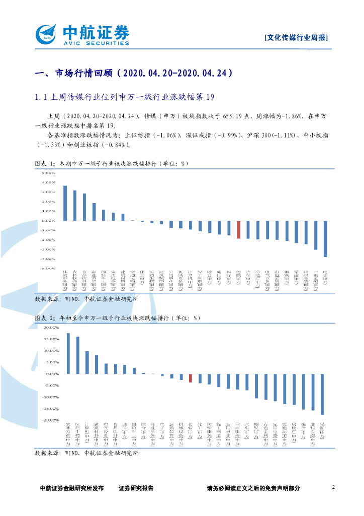 中航证券:文化传媒行业周报:看好直播带货能力强,坚定线上消费投资主线.pdf
