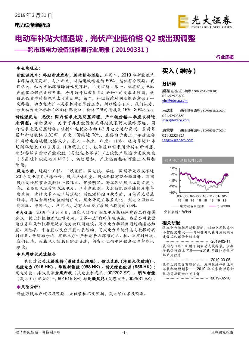 光大证券:跨市场电力设备新能源行业周报:电动车补贴大幅退坡,光伏产业链价格Q2或出现调整.pdf