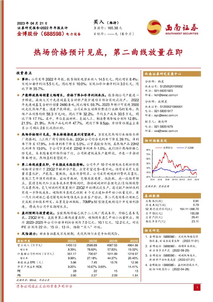 西南证券:金博股份(688598)-热场价格预计见底,第二曲线放量在即.pdf