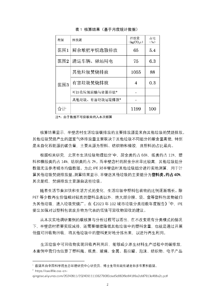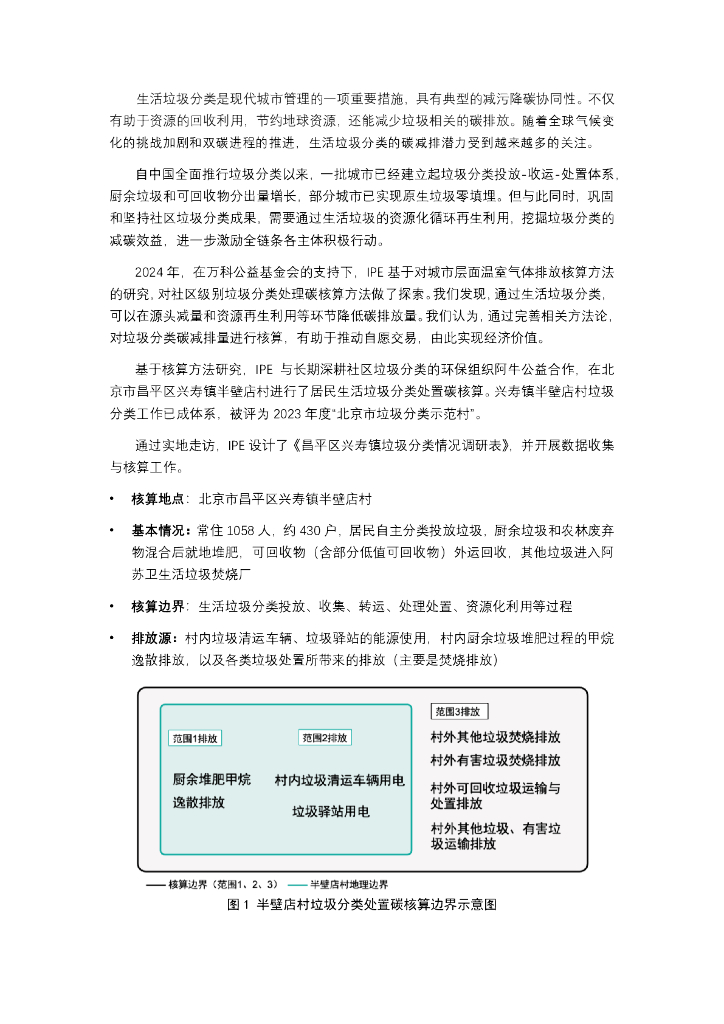 IPE公众环境研究中心:2025年社区生活垃圾分类碳减排潜力研究简报——以北京市昌平区兴寿镇半壁店村为例.pdf