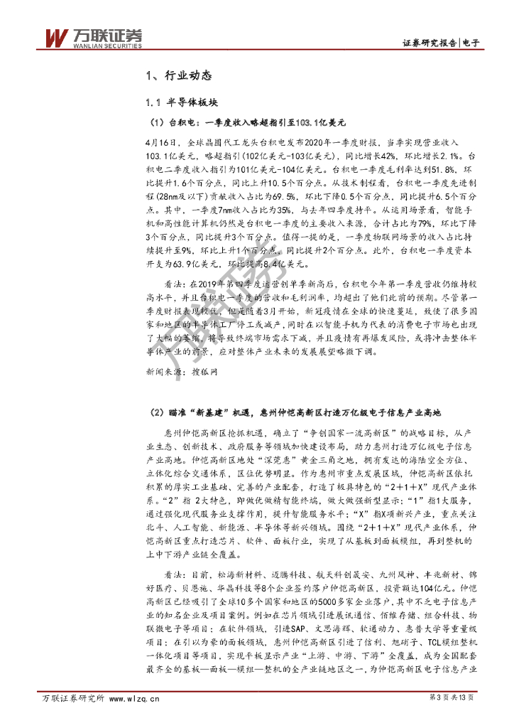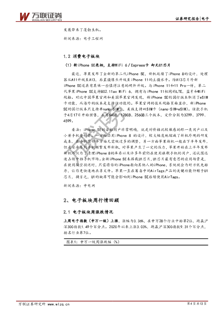 万联证券:电子行业周观点:台积电Q1营收超预期,苹果发布iPhone SE.pdf