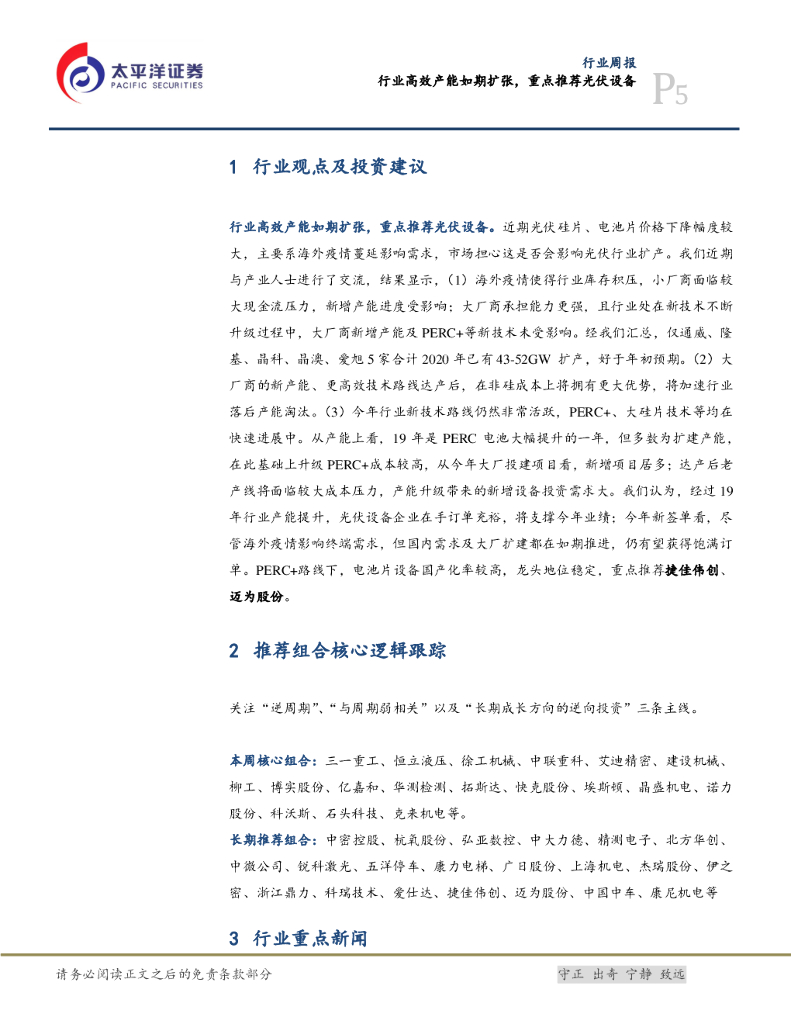 太平洋证券:机械行业周报:行业高效产能如期扩张,重点推荐光伏设备.pdf