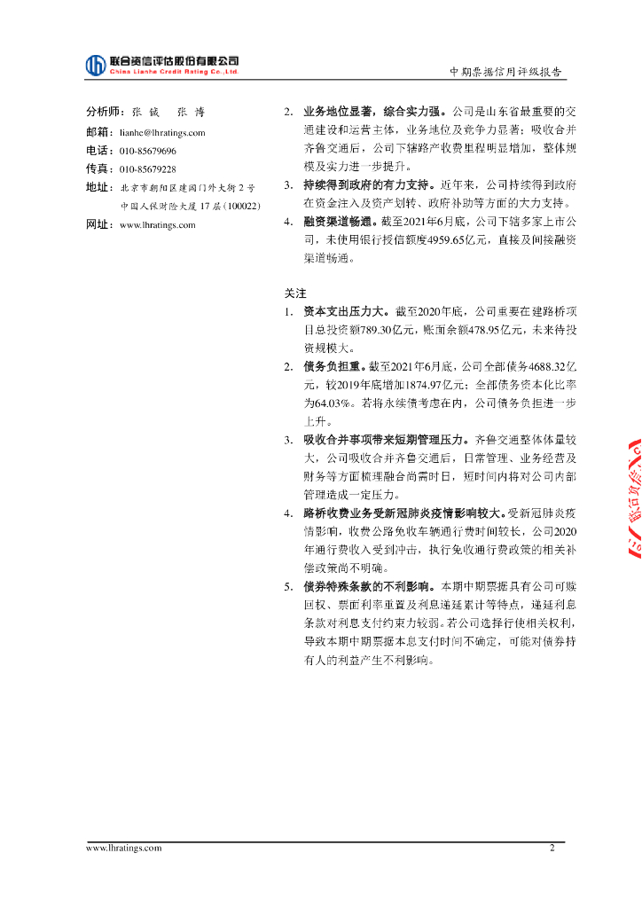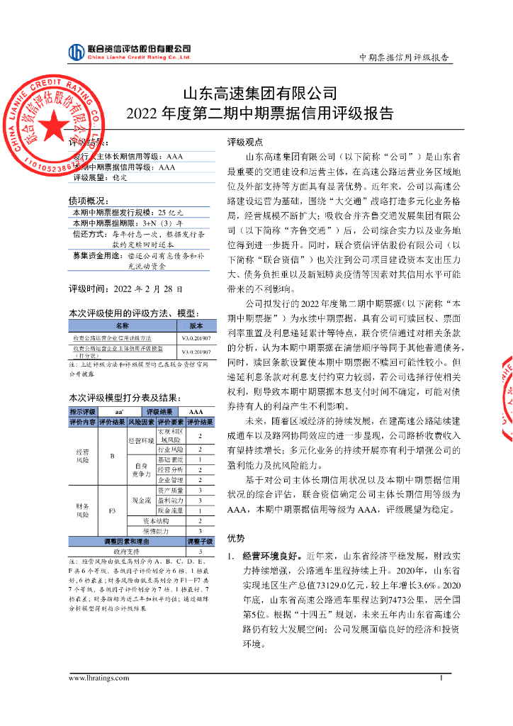 联合资信:山东高速集团有限公司2022年度第二期中期票据信用评级报告.pdf