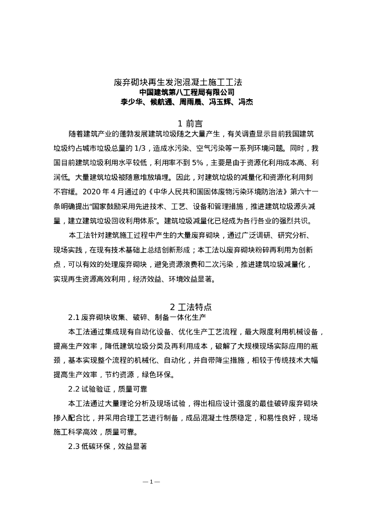 QHGF-2022062 废弃砌块再生发泡混凝土施工工法.doc