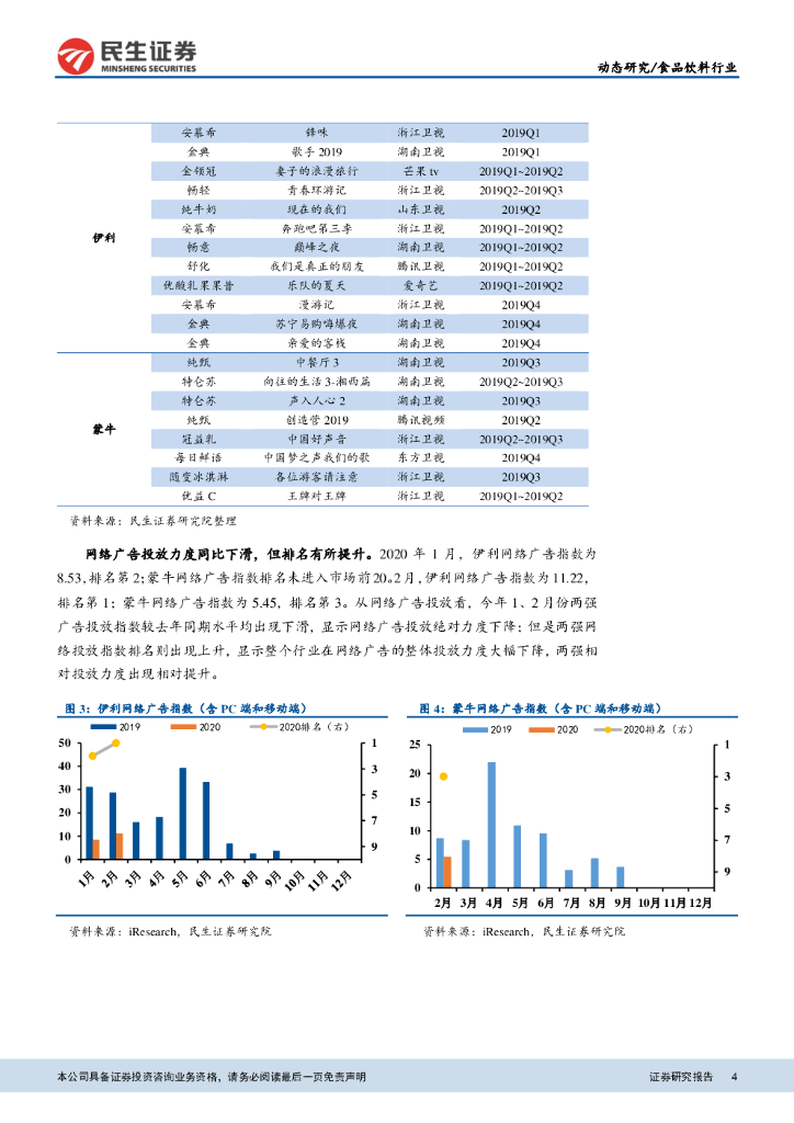 民生证券:食品饮料行业:20Q1伊利延续空中投放下滑策略,两强均强化基础白奶.pdf