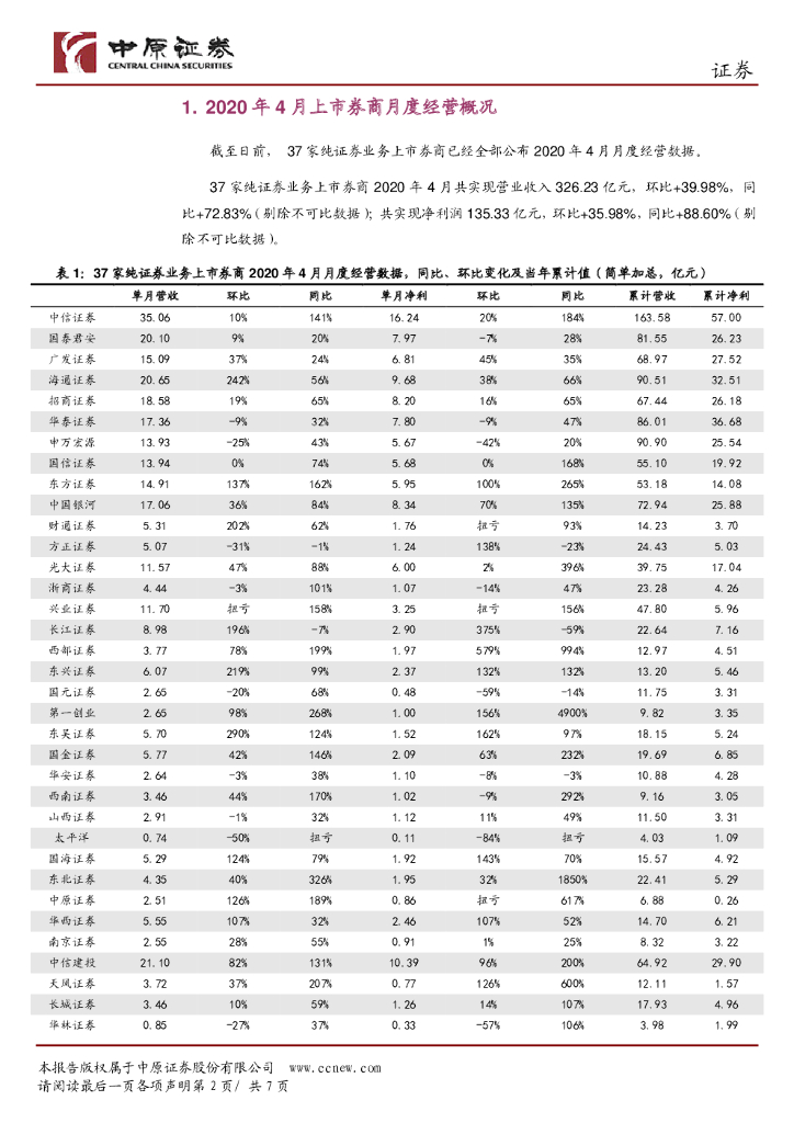中原证券:上市券商2020年4月月报点评:环比、同比同步实现超预期增长.pdf