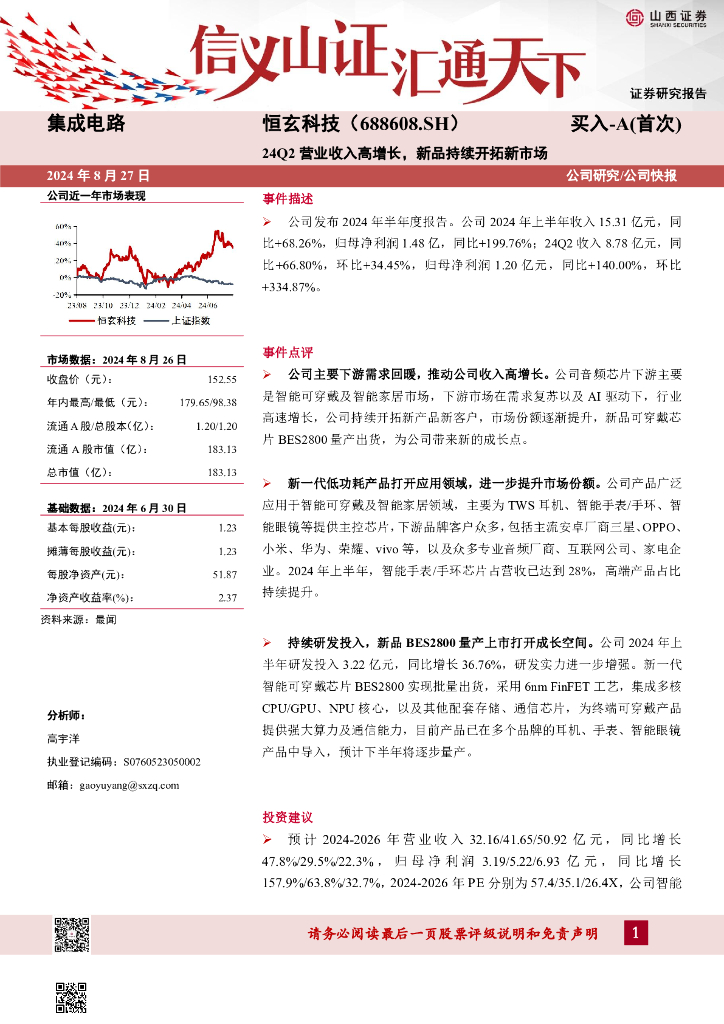 山西证券:恒玄科技(688608)-24Q2营业收入高增长,新品持续开拓新市场.pdf