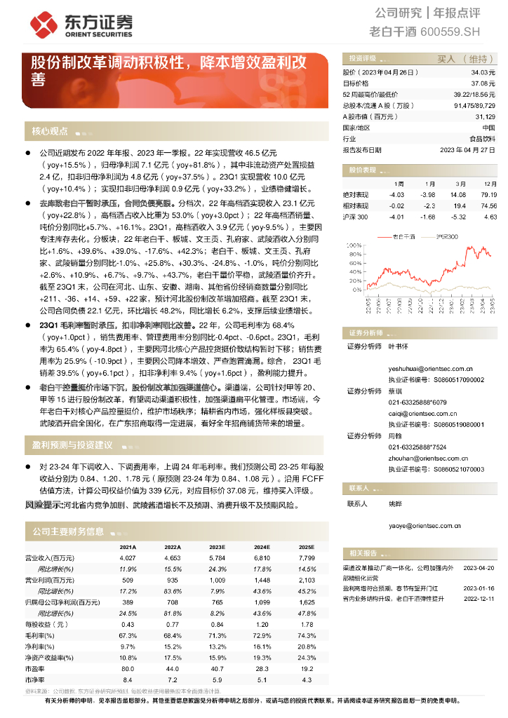 东方证券:老白干酒(600559)-股份制改革调动积极性,降本增效盈利改善.pdf