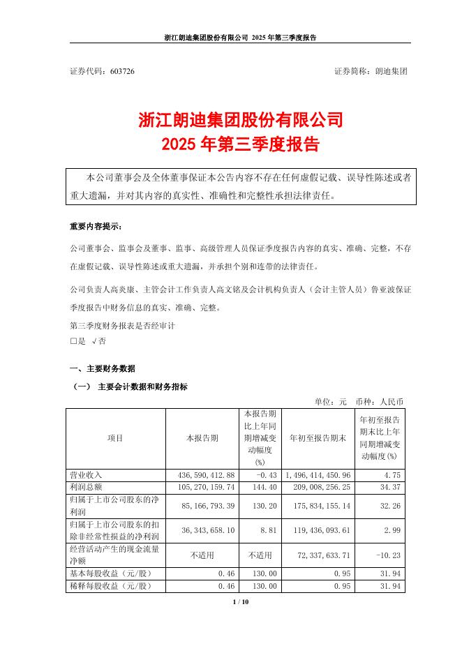 603726-朗迪集团:2025年第三季度报告.pdf