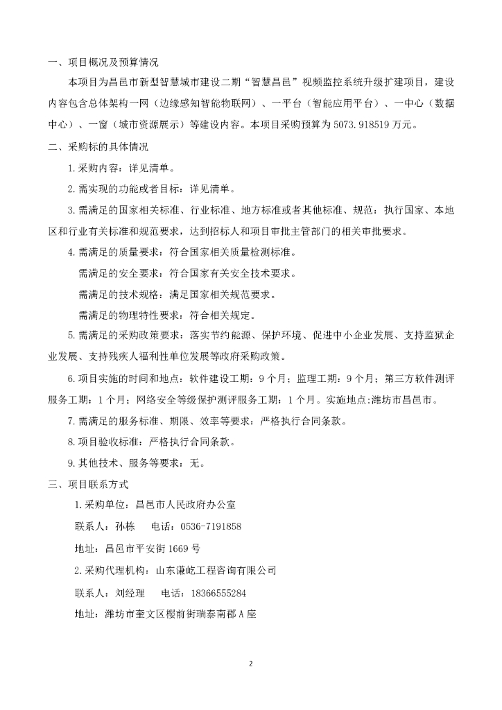 潍坊昌邑新型智慧城市“智慧昌邑”视频监控系统需求.pdf