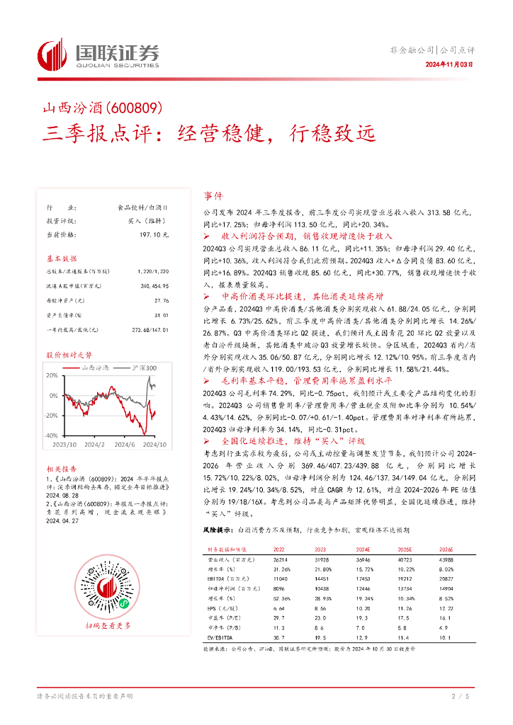 国联证券:山西汾酒(600809)-三季报点评:经营稳健,行稳致远.pdf
