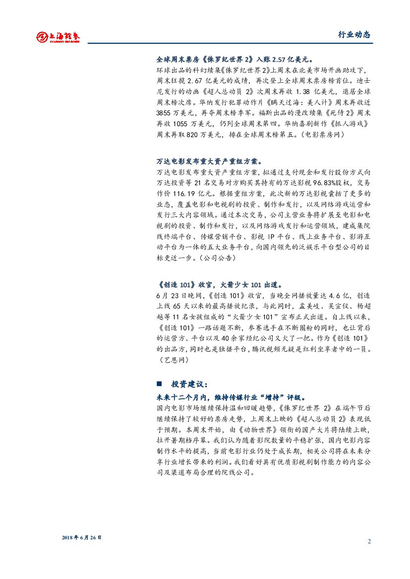 上海证券:传媒行业:《侏罗纪世界2》蝉联周票房冠军.pdf