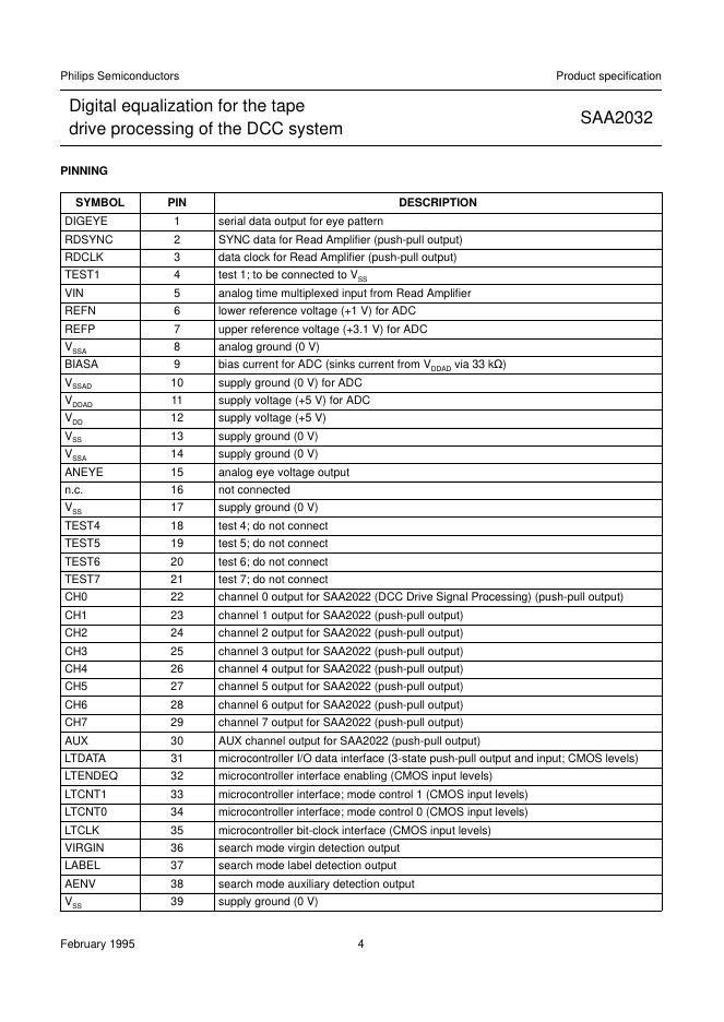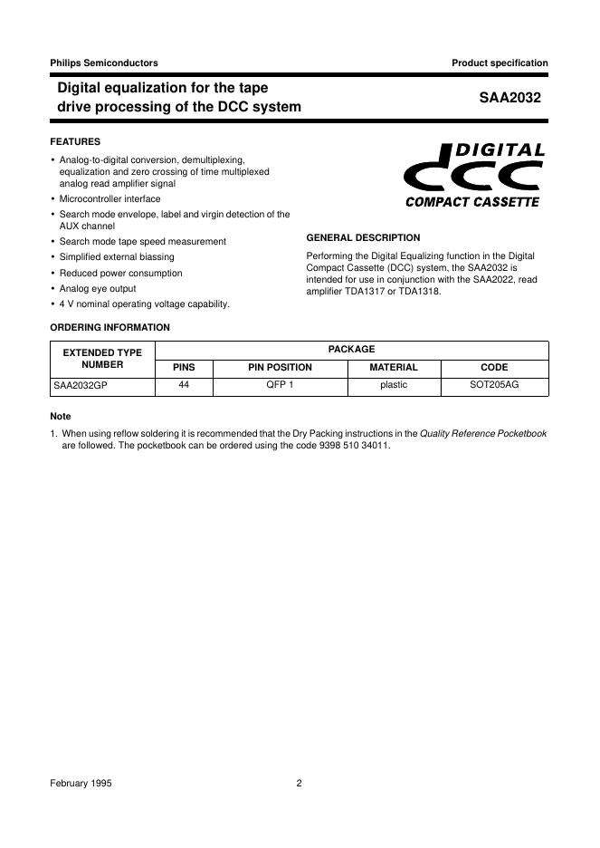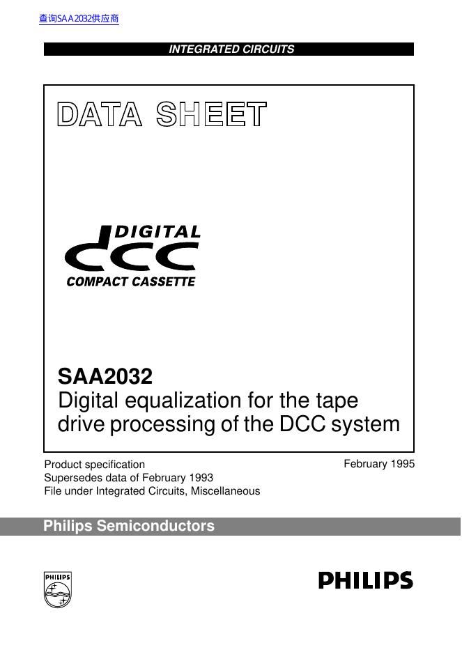philips SAA2032 Digital equalization for the tape drive processing of the DCC system 数据手册.pdf