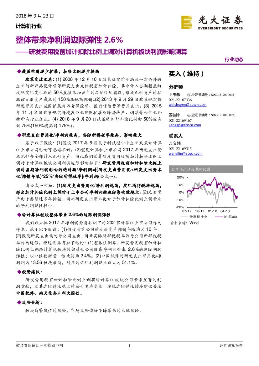 光大证券:计算机行业:研发费用税前加计扣除比例上调对计算机板块利润影响测算:整体带来净利润边际弹性2.6%.pdf