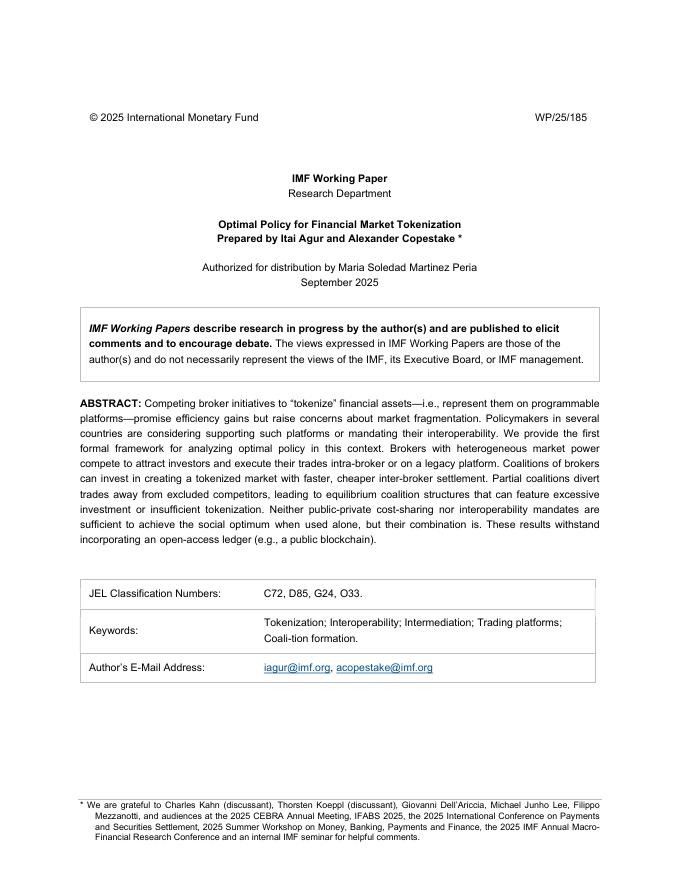 国际货币基金组织:金融市场代币化的最优策略(英文版).pdf