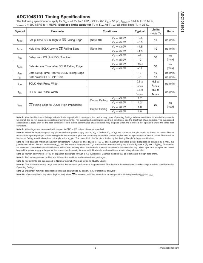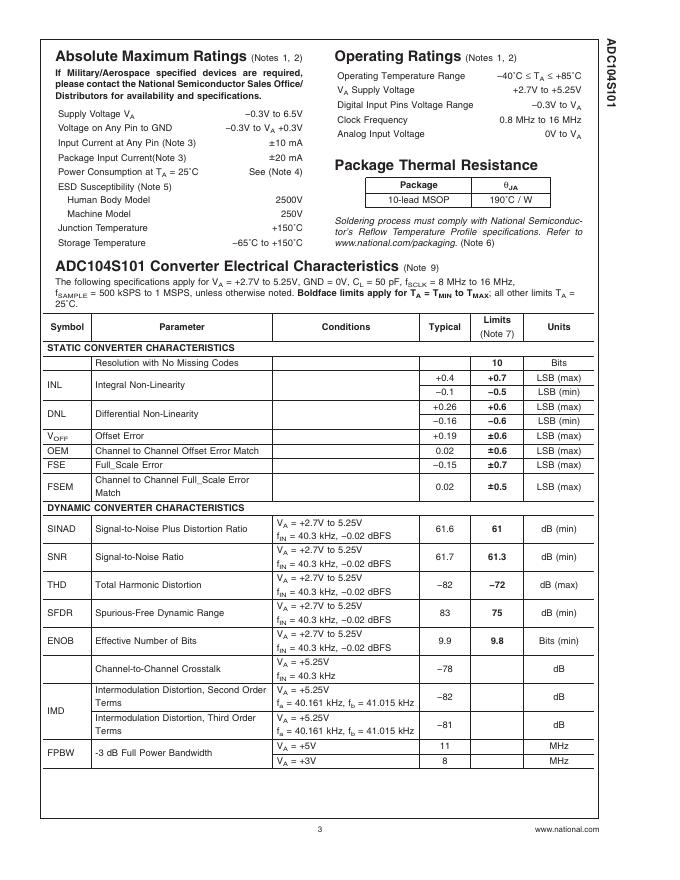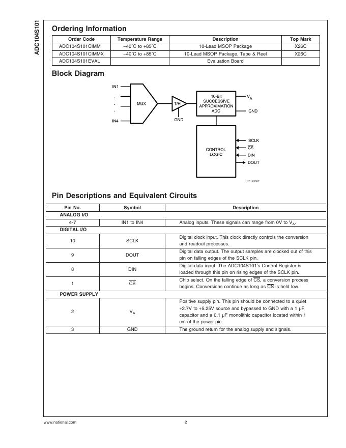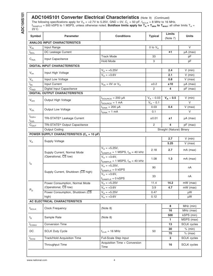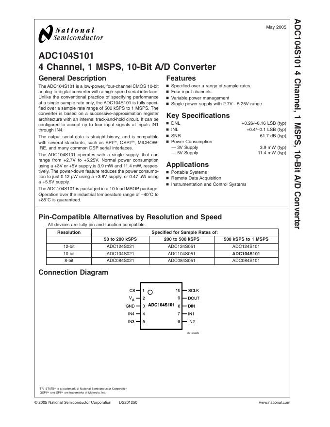 NATIONAL SEMICONDUCTOR ADC104S101 4 Channel, 1 MSPS, 10-Bit A/D Converter 数据手册.pdf