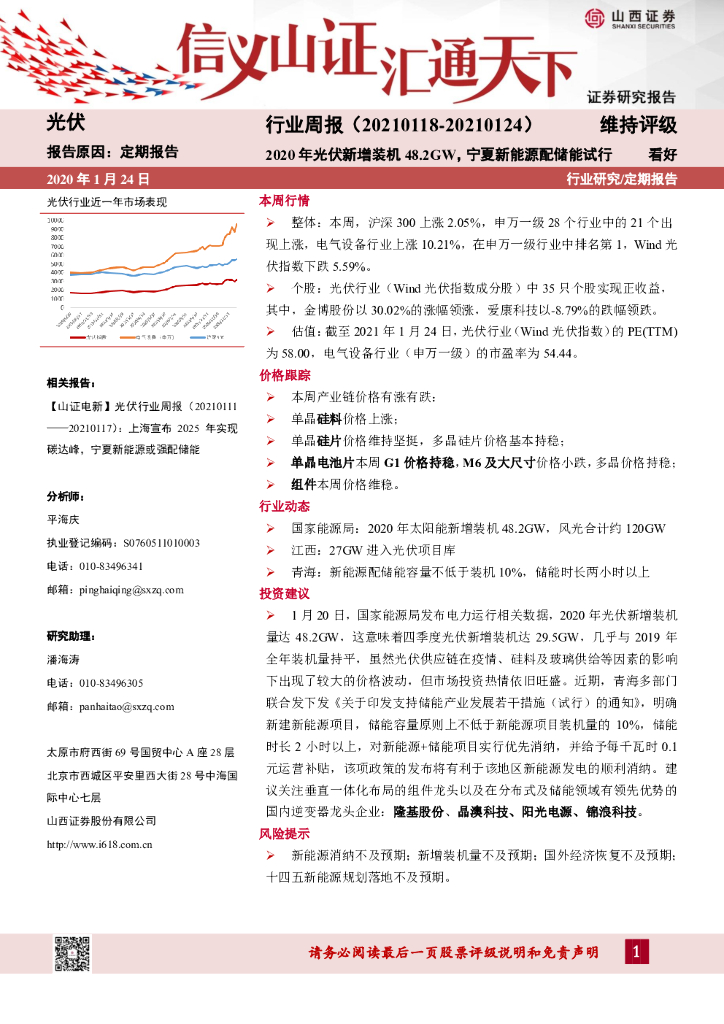 山西证券:光伏行业周报:2020年光伏新增装机48.2GW,宁夏新能源配储能试行.pdf