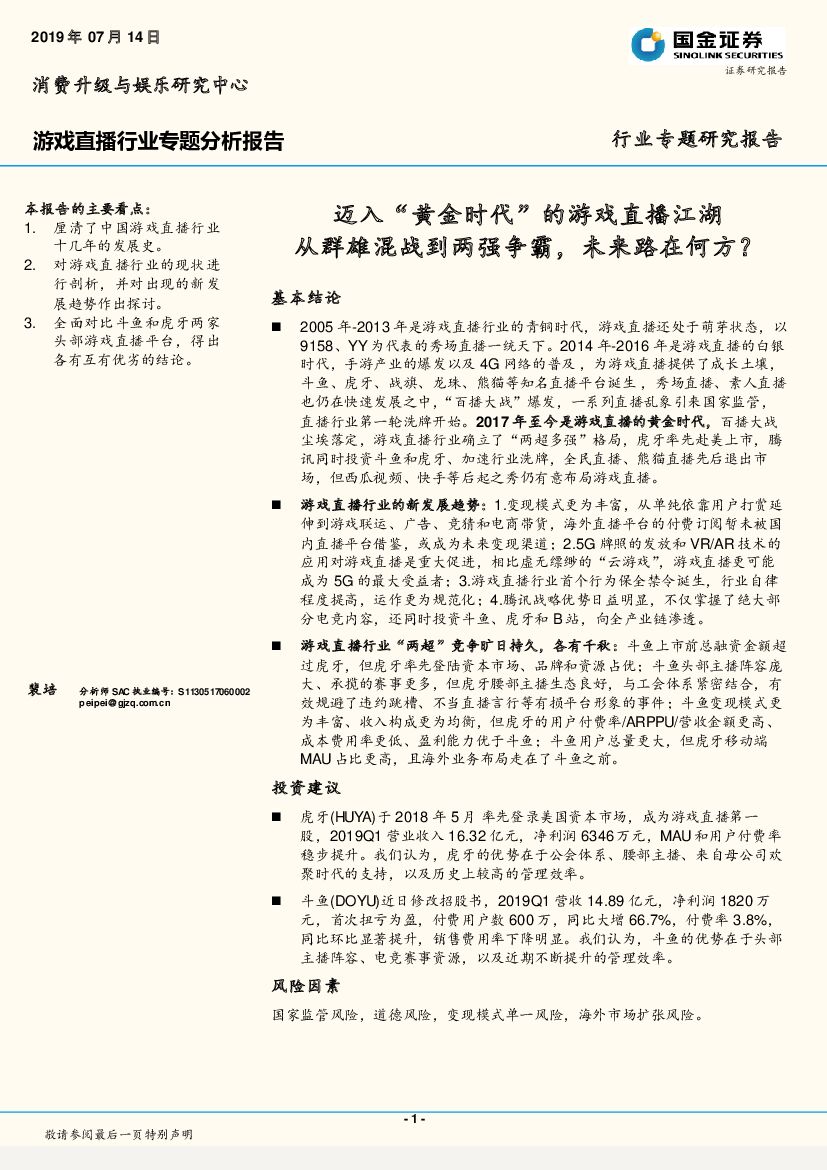 国金证券:游戏直播行业专题分析报告:迈入“黄金时代”的游戏直播江湖从群雄混战到两强争霸,未来路在何方?.pdf