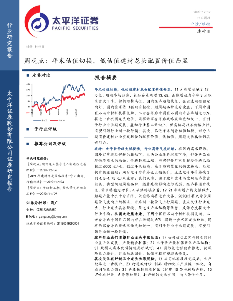 太平洋证券:建材Ⅲ周观点:年末估值切换,低估值建材龙头配置价值凸显.pdf