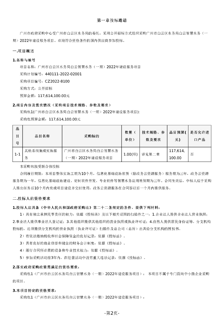 广州市白云区水务局白云智慧水务(一期)2022年建设服务项目招标文件.pdf