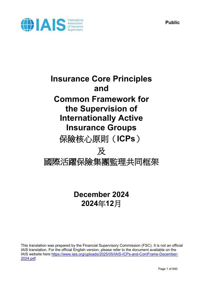 国际保险监督官协会(IAIS):2024年保险核心原则(ICPs)及国际活跃保险集团监理共同框架报告(中英版).pdf