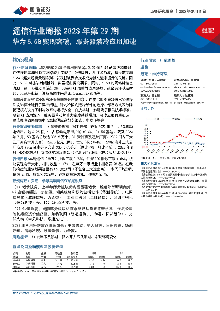 国信证券:通信行业周报2023年第29期:华为5.5G实现突破,服务器液冷应用加速.pdf