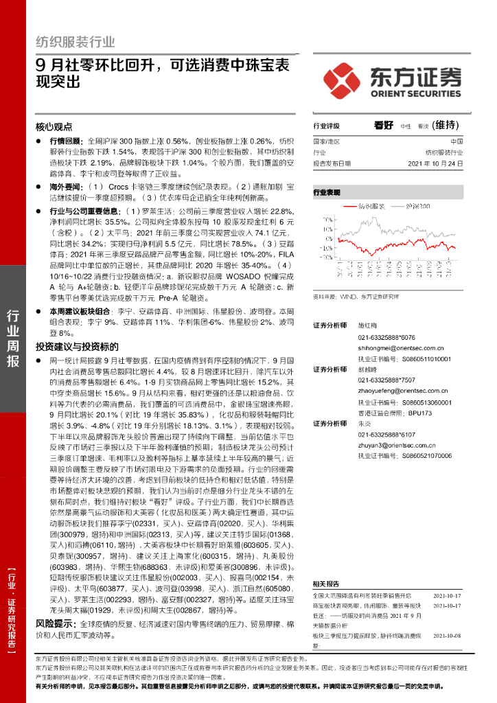 东方证券:纺织服装行业周报:9月社零环比回升,可选消费中珠宝表现突出.pdf