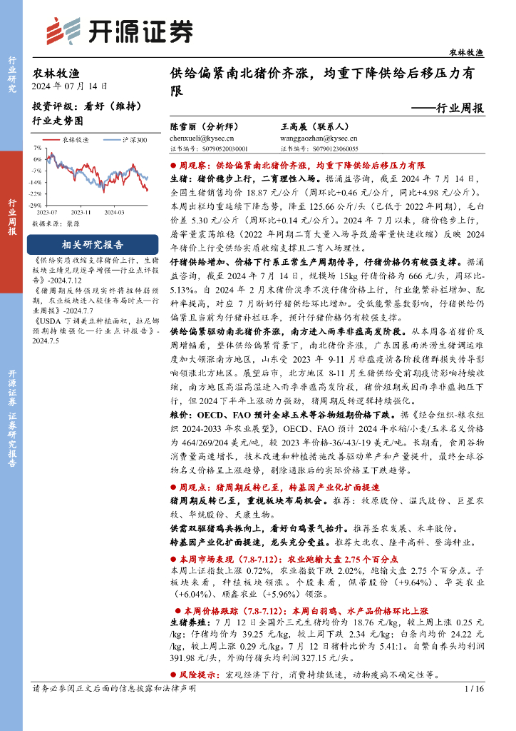 开源证券:农林牧渔行业周报:供给偏紧南北猪价齐涨,均重下降供给后移压力有限.pdf