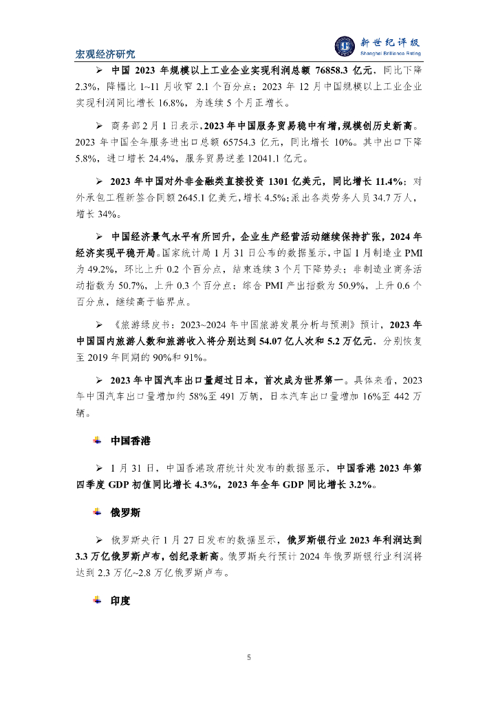 新世纪评级:IMF上调全球经济增长预期 2023年中国汽车出口世界第一——全球宏观经济周报(2024/1/27-2/2).pdf