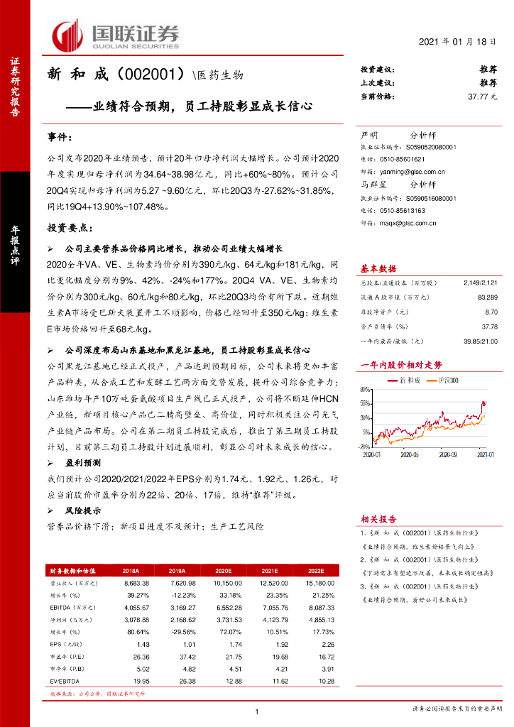 国联证券:新和成(002001)-业绩符合预期,员工持股彰显成长信心.pdf