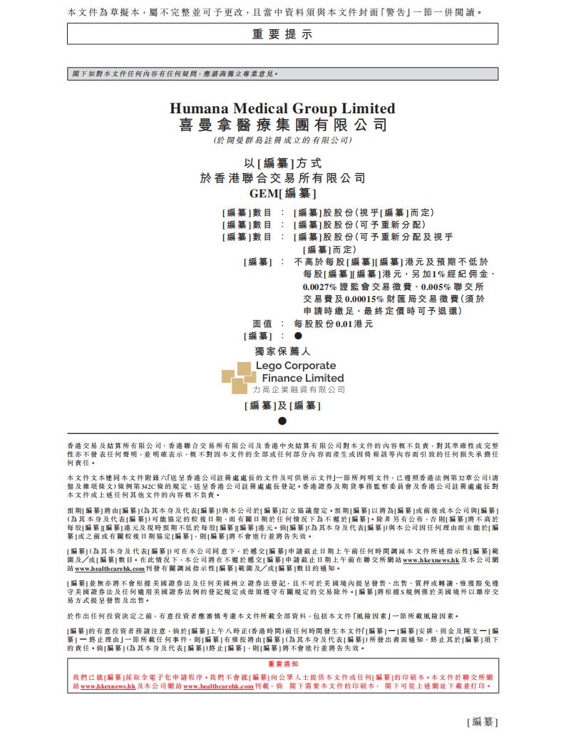 Humana喜曼拿医疗港交所GEM创业板IPO上市招股说明书:多元化医疗仪器解决方案及产品提供商.pdf