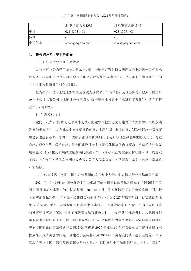 603955-大千生态:大千生态2025年度报告摘要.pdf