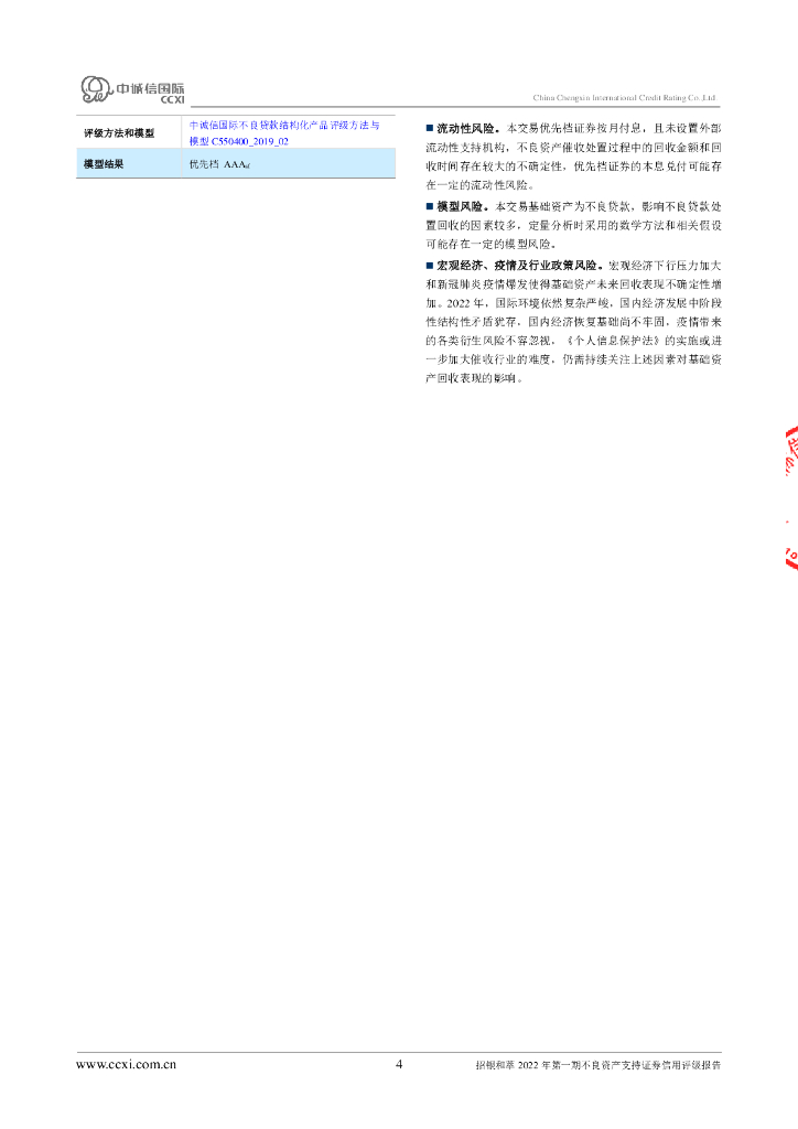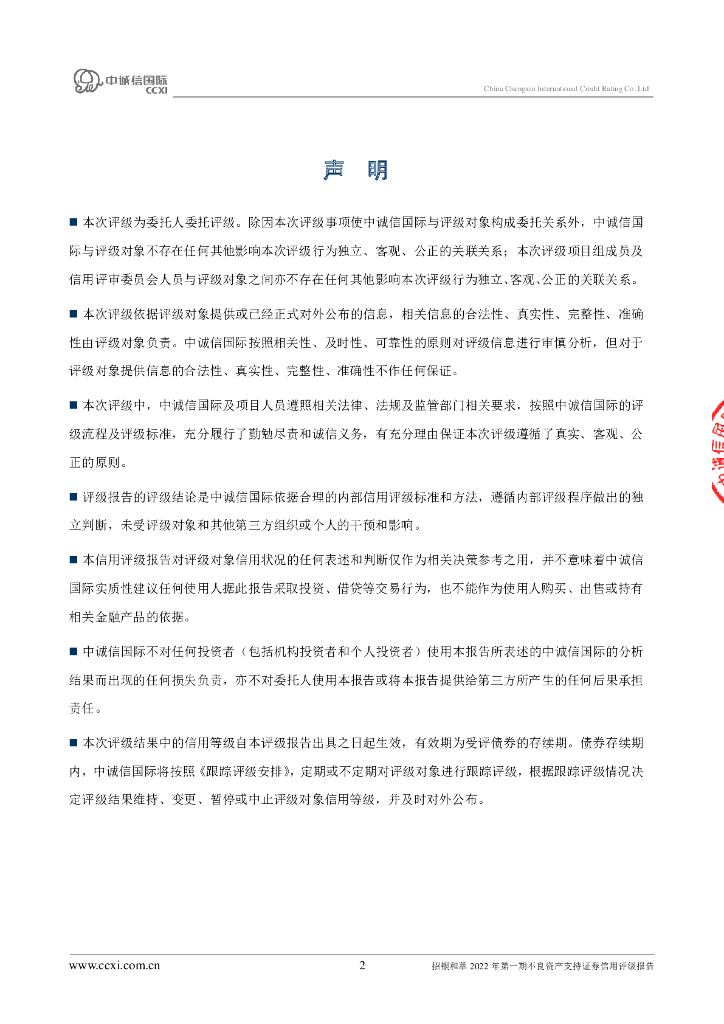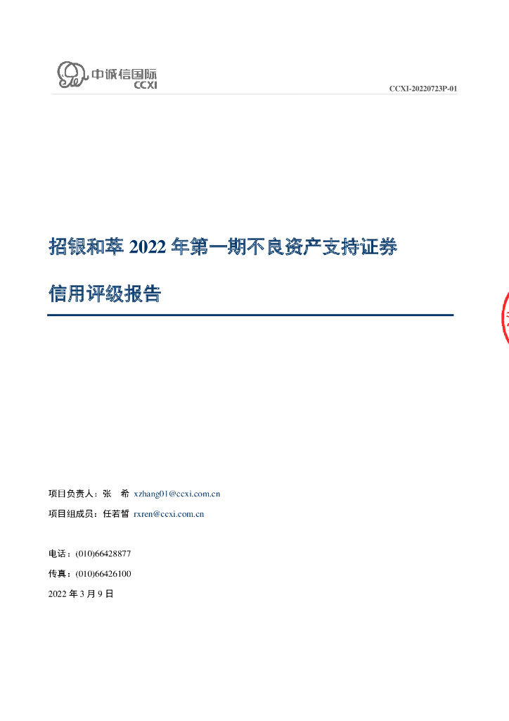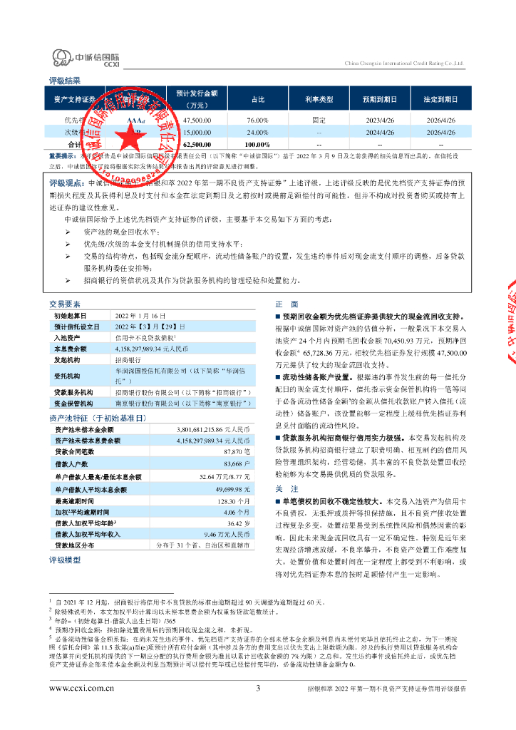 中诚信:招银和萃2022年第一期不良资产支持证券售前评级报告及持续跟踪评级说明(中诚信国际).pdf