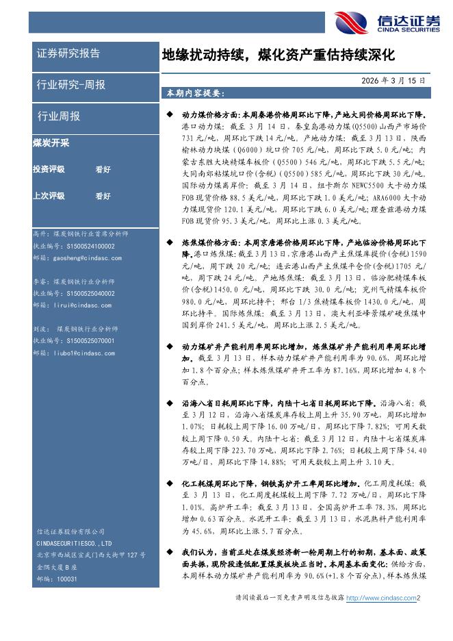 信达证券:煤炭开采行业:地缘扰动持续,煤化资产重估持续深化.pdf