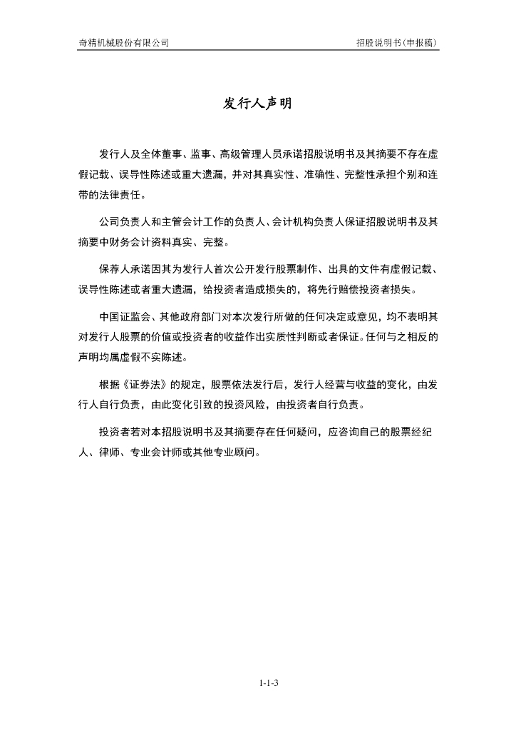 奇精机械股份有限公司上交所主板IPO上市招股说明书.pdf