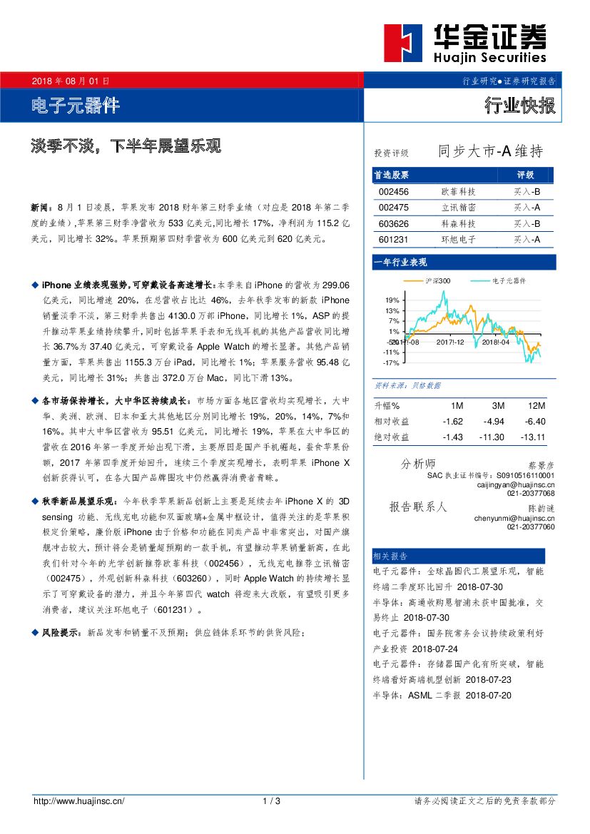 华金证券:电子元器件行业快报:淡季不淡,下半年展望乐观.pdf