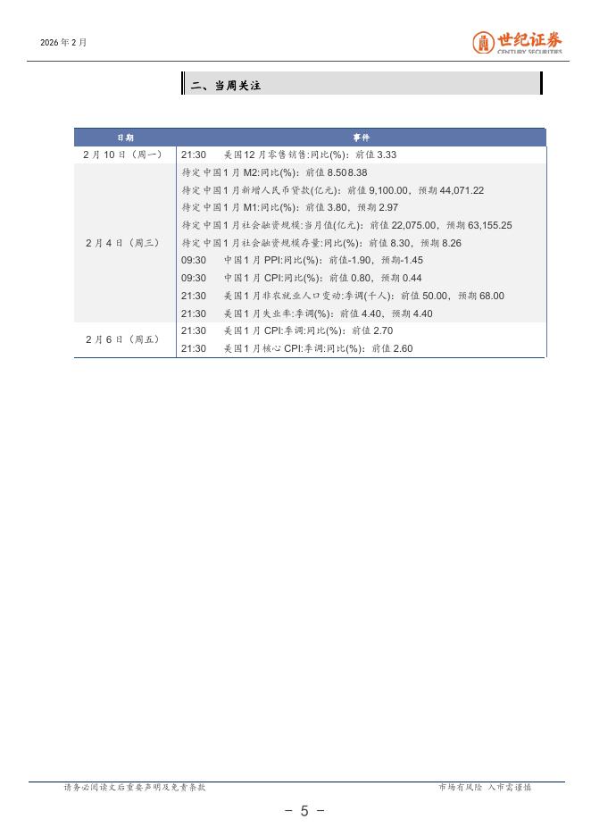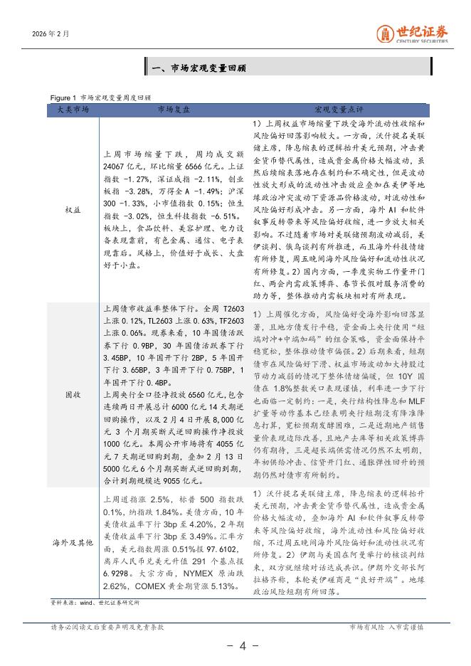 世纪证券:宏观周报(2月第1周):海外流动性和风险偏好收缩影响市场-260210.pdf