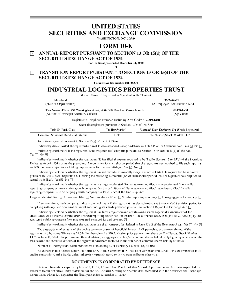 Industrial Logistics Properties Trust(ILPT)2020财年年度报告(英文版).pdf